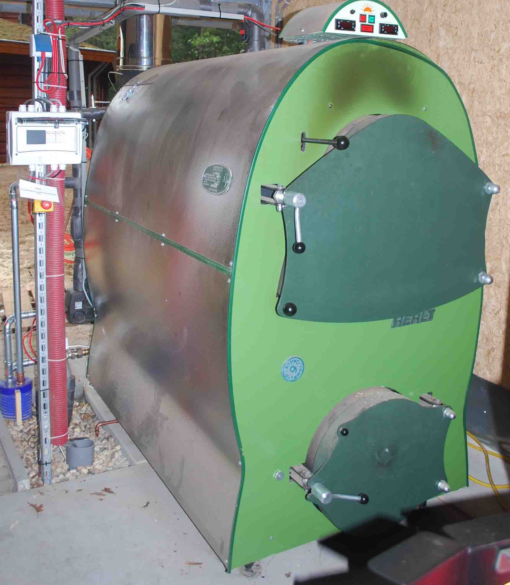 Als de zon onvoldoende warmte levert, kan de houtvergasserketel worden aangestoken. In de houtvergasserketel wordt onbehandeld afval hout, kaphout en snoeihout verbrand. Deze verbranding is zo efficiënt dat er bijna geen as ontstaat tijdens de verbranding. Het hout wordt zo heet dat het bij een temperatuur van ca 1.300 oC vergast en verbrandt. Het kap- en snoeihout komt van het eigen terrein en wordt in overleg met staatsbosbeheer gekapt en gesnoeid.